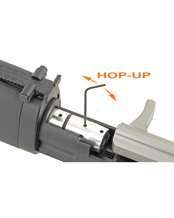Mecanismul de actionare este foarte simplu, fiind o replica manuala. Pistonul este din aluminiu iar cutia cu mecanisme este din metal. Teava interna are o lungime impresionanta de 590 mm fapt ce in teorie ar trebui sa-i ofere o precizie cat mai buna. Camera de hopup este din metal si permite reglajul nivelului de hopup. Armarea replicii este relativ dificila datorita unghiului pe care-l constituie parghia de armare cu mana, dar cu putin antrenament va deveni mai usor. Arcul montat rezulta o viteza de 140 m/s masurata cu bile de 0.20g.
