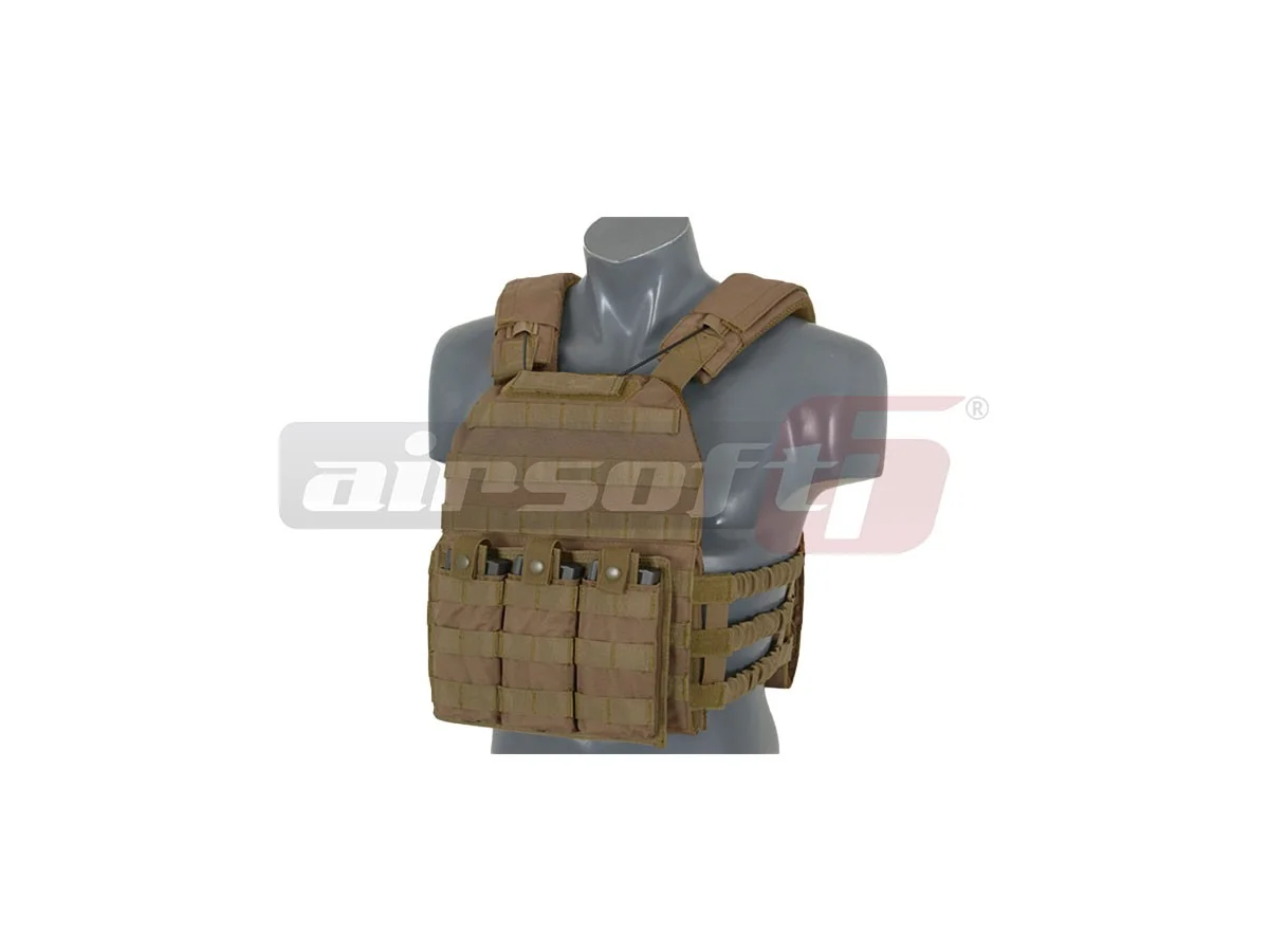 This plate carrier offered by 8Fields, model First Defense, is designed for those faint of heart who firmly believe that an airsoft BB can injure a lung or spleen. In addition to the capabilities of a tactical vest equipped with a MOLLE accessory attachment system, it comes with 2 SAPI plastic plates. The vest is made from high-quality 600D nylon, highly resistant to wear and moisture.