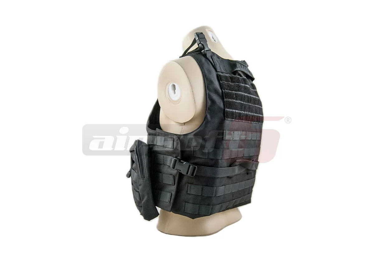A replica of the famous AAV FSBE QR model, this vest incorporates all the important elements of the real vest. The materials used and the attachment systems are very durable. The base of the vest constitutes a MOLLE platform on which a multitude of utility pouches and accessories can be attached. The package includes 2 large double magazine pouches, a zippered pocket, a utility pouch with strap, and a map pouch with a magazine pocket. The size of the vest is adjustable.