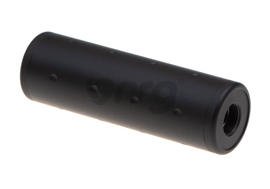 98x32 mm suppressor manufactured by ACM. It is made of high-quality aluminum and features a 14 mm + and - thread. Its dimensions allow for sound dampening of the BBs fired.