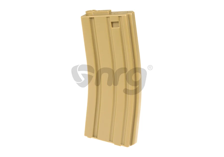 Low Cap airsoft magazine from ARES, designed for M4/M16 platforms. This airsoft magazine has a capacity of 85 6mm BBs. The functioning principle is based on compressing an internal spring when loading the BBs. It is built from ABS plastic with a high-quality plastic interior. It features patterns on the exterior to improve handling, and has a retractable mag extractor at the bottom.
