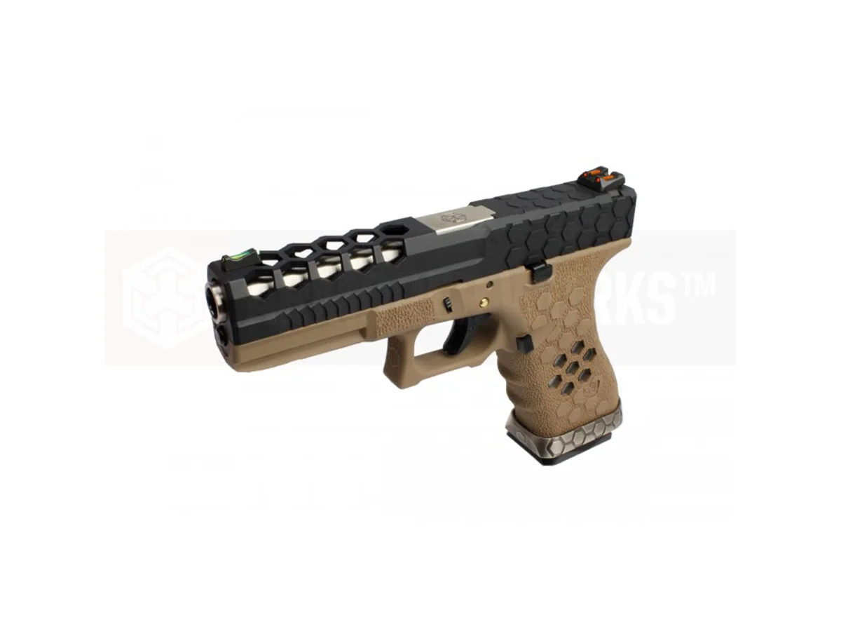 Are you tired of the standard design of 1911 series pistols? The Hex-Cut series includes a variety of ergonomic models, with various lengths, trigger styles, colors, and cuts. The VX0111 Metal pistol replica is part of a generation of custom-ready replicas from AW Custom. This replica certainly draws attention due to its design and high-quality materials.
