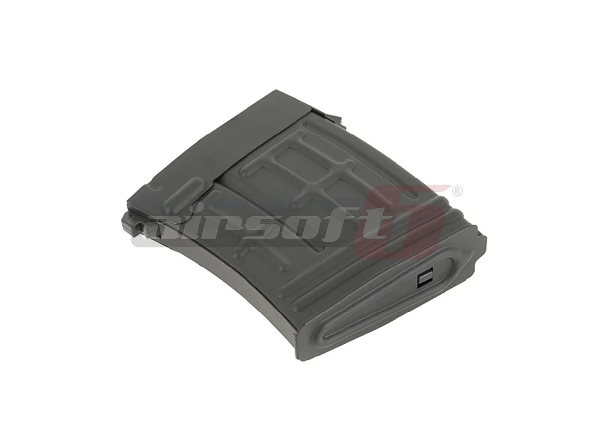 Spring magazine designed for Cyma Dragunov replicas. The magazine is made of metal and plastic and can hold 100 rounds.