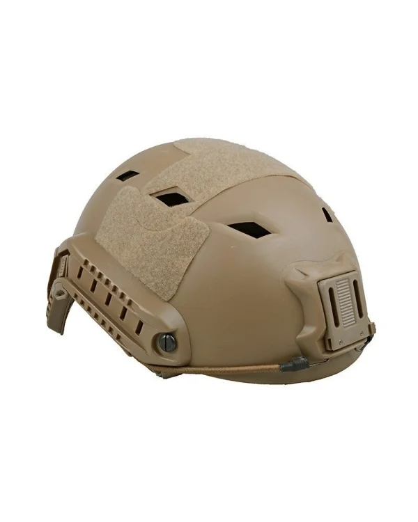 This helmet replicates a modern model, designed to provide military troops with maximum utility, protection, and comfort. It is made of durable plastic and the design offers good comfort to the user. The attachment system is adjustable and there are attachment systems for accessories all over the surface of the helmet.