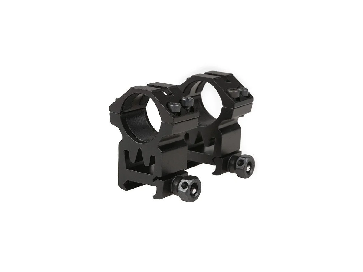 Inele medii marca Delta Armory pentru prinderea lunetei cu diametrul tubului de 25 mm pe sine de 22mm. Aceste inele sunt fabricate din aluminiu iar suruburile de fixare pe sina sunt fabricate din otel si permit strangerea cu mana libera. Permitand astfel o montare/demontare mult mai usoara. In interior exista sectiuni din material pentru protectia tubului lunetei si pentru o fixare mai buna.