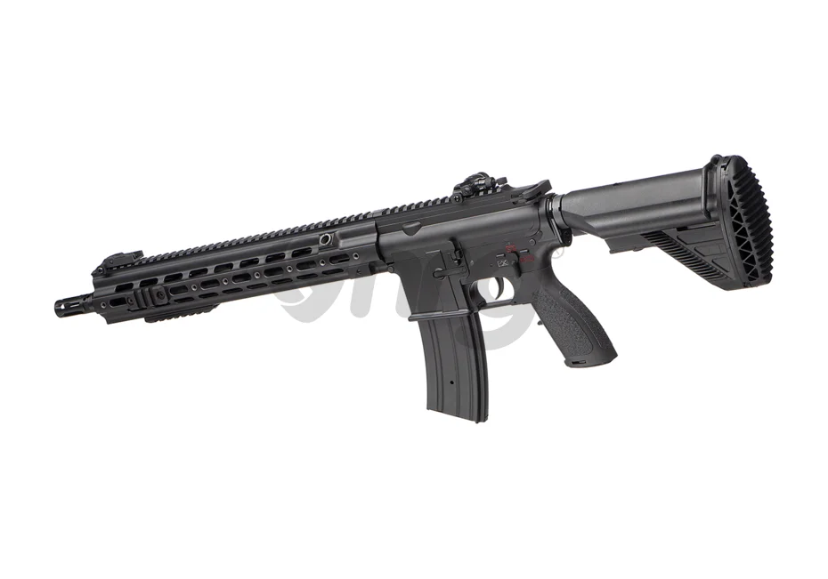 The gearbox is version 2 and is referred to as EGV (Enhanced Gearbox Version). The piston is made of polycarbonate with metal teeth, and the cylinder head and air nozzle are equipped with double O-rings, 8mm bushings, and a quick-change spring system.