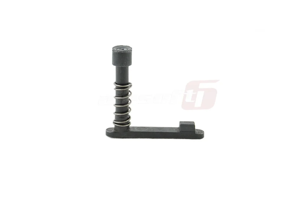 This assembly is used on M4/M16 type platforms and certain derivatives to secure the BB magazine in place. It is made from high-quality metal and is installed using a screw. The package includes all the necessary components for its operation. This component is intended to replace the original part in case of damage.