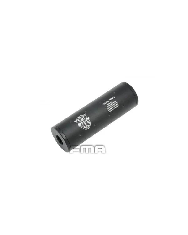 Amortizor fabricatie FMA din aluminiu cu diametru de 35mm. Fiind fabricat din aluminiu greutatea lui este redusa astfel imbunatatind manevrabilitatea. Amortizorul reuseste sa atenueze o parte din sunetul produs de bila ce paraseste teava interna a replicii. Amortizorul este prevazut in capete cu filete de 14mm + si -, putand astfel fi montat. Lungimea este de 107 mm.