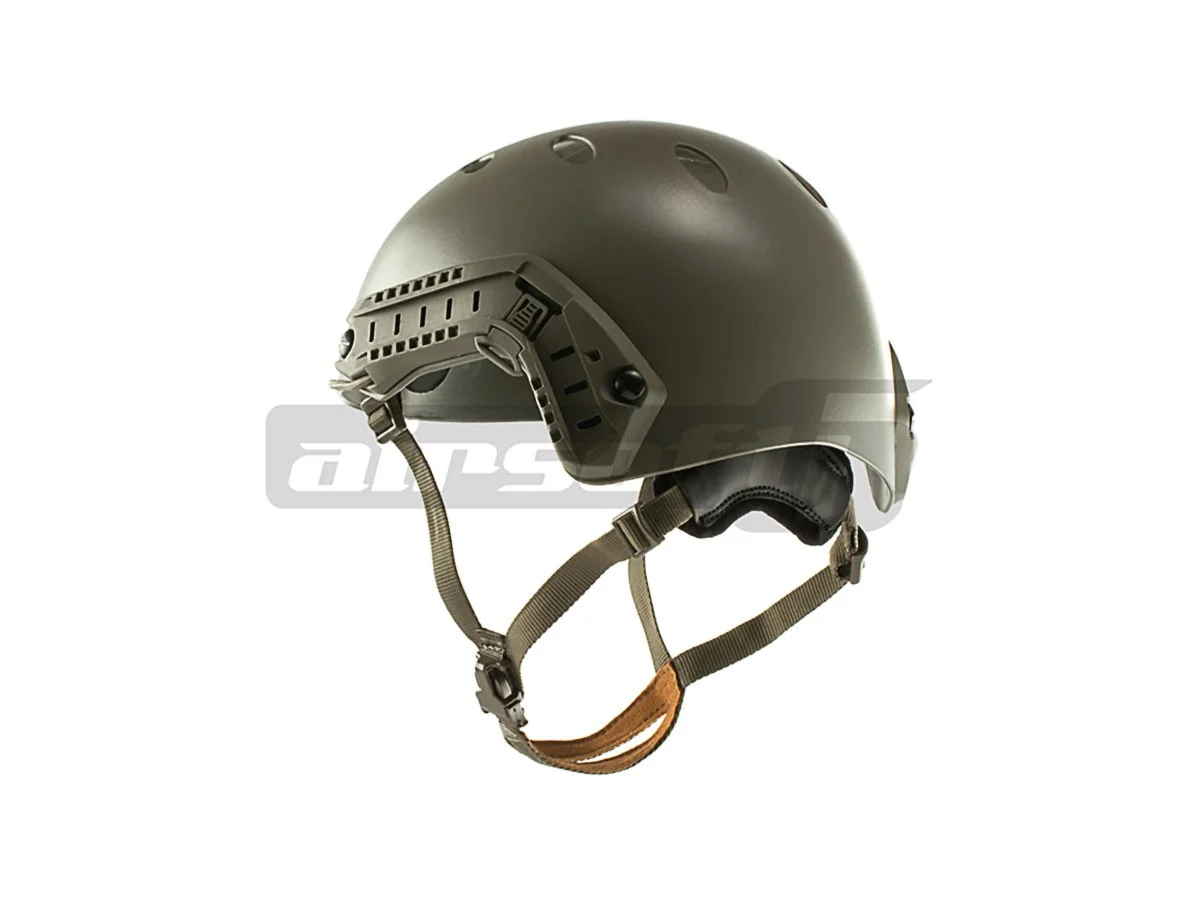 This helmet manufactured by FMA replicates the Ops-Core FAST Helmet. The helmet is made from plastic, and inside it features soft polystyrene and foam padding to enhance comfort. To ensure a secure fit on the head, it is equipped with a quick adjustment system around the head as well as a chin strap with a carabiner.