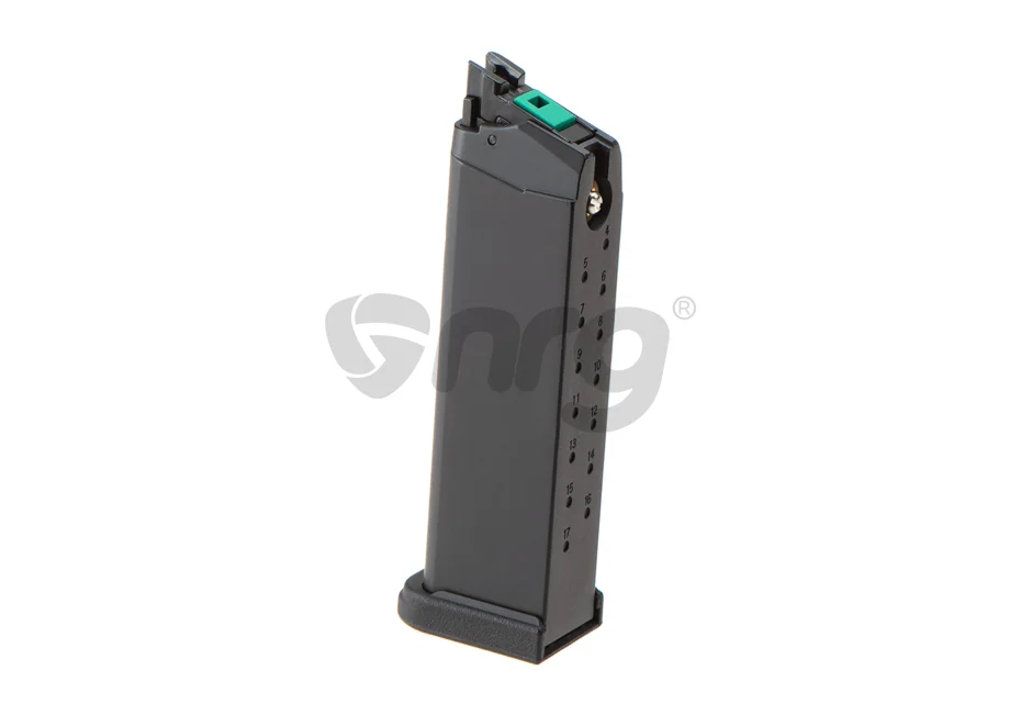 Magazine produced by G&G for the GTP9/SMC9 platform. This magazine can be used with Green Gas or other similar gases. It is made of metal, with a plastic feeding lip. The magazine has a capacity of 23 6mm BBs.