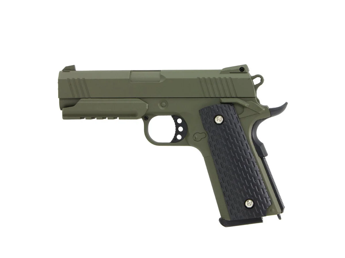This model somewhat copies the 1911 model. It is a pistol with modest expectations, but it will perform its job excellently. The relatively low speed will allow it to be part of the gear for an active airsoft player, and its simplicity of operation will provide a fairly long lifespan.
