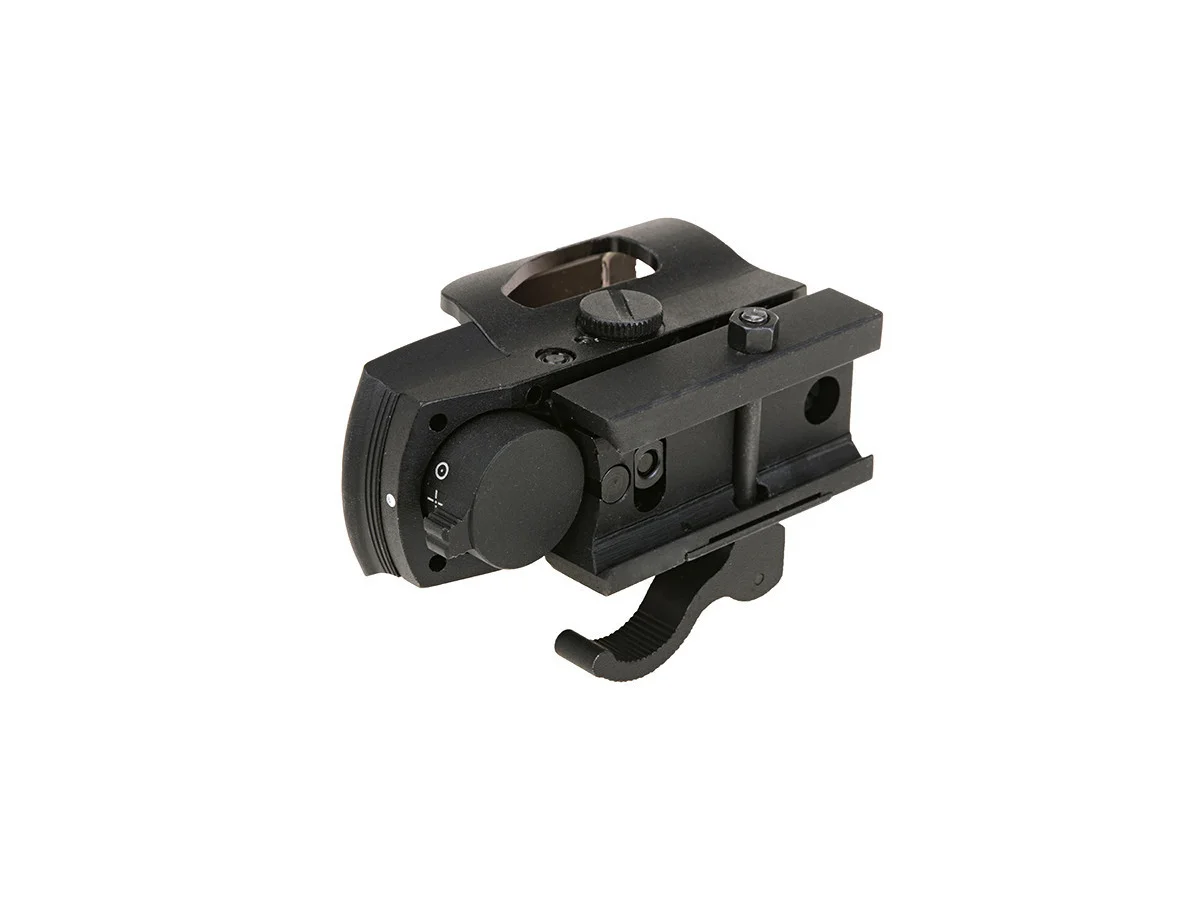 An advanced sighting system that allows for much easier targeting than classic integrated sights. It is made of aluminum, significantly reducing the weight of the assembly while providing good durability. At the front, you can see the reflector glass protected by the metal construction.