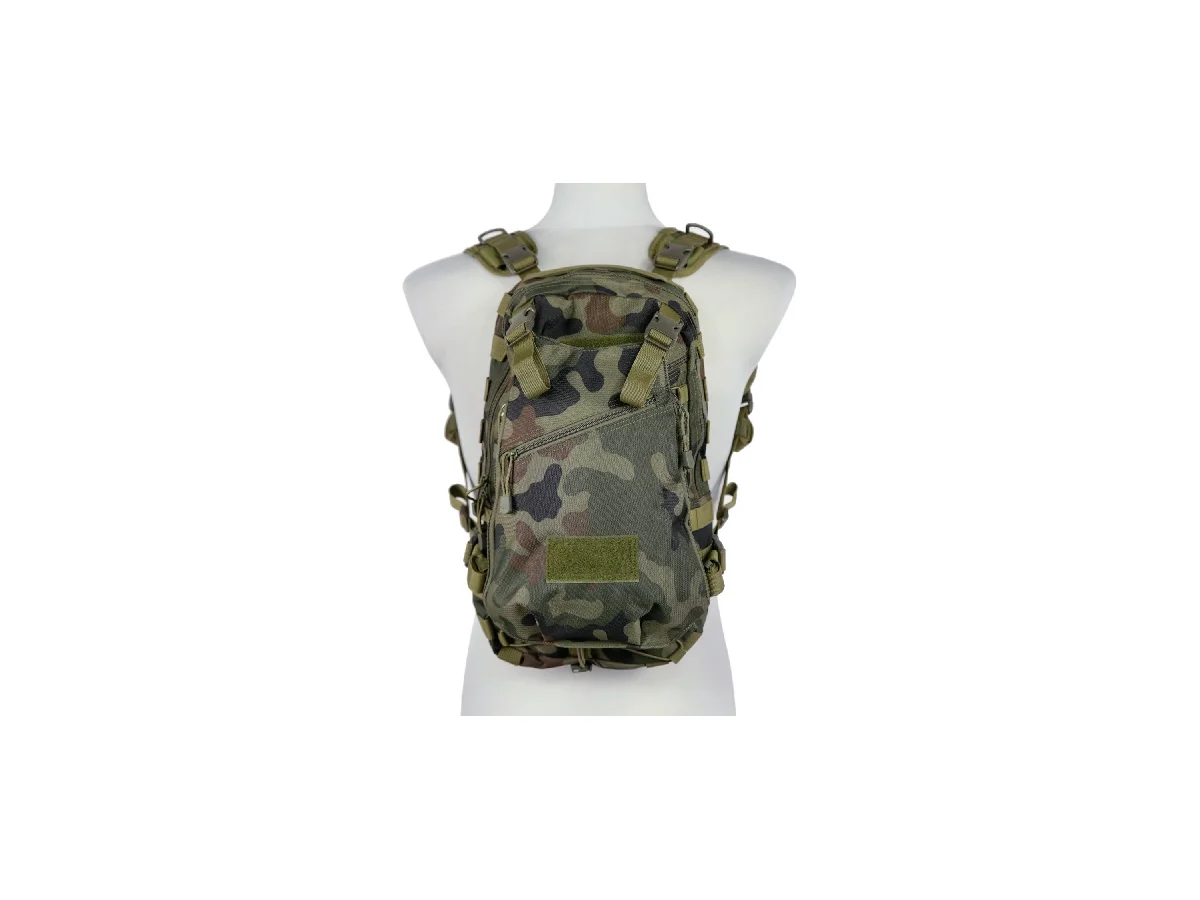Rucsac cu tenta militara marca GFC realizat din nylon 600D impermeabil. Acest rucsac poate fi utilizat in actiuni militare sau zi de zi la scoala, slujba sau in drumetii. Este foarte confortabil datorita captuselii cu material moale absorbant in partea de contact. Poate fi usor reglat si asigurat. Compartimentarea lui este foarte utila si bine proportionata. Permite transportul unui diversitati mari de obiecte.