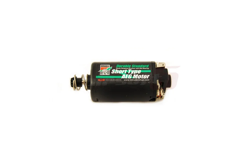 The standard motor manufactured by Guarder is designed for stable configurations where the motor does not play a role in either speed or power. It is a balanced motor between power and speed that can be used with springs ranging from 80 to 120 m/s with voltages between 7.4V and 9.6V under complete safety conditions. The motor is equipped with a heat-treated steel pinion to withstand intense wear. For better performance, the motor is equipped with bearings. Warning! The motor's magnets are very powerful.