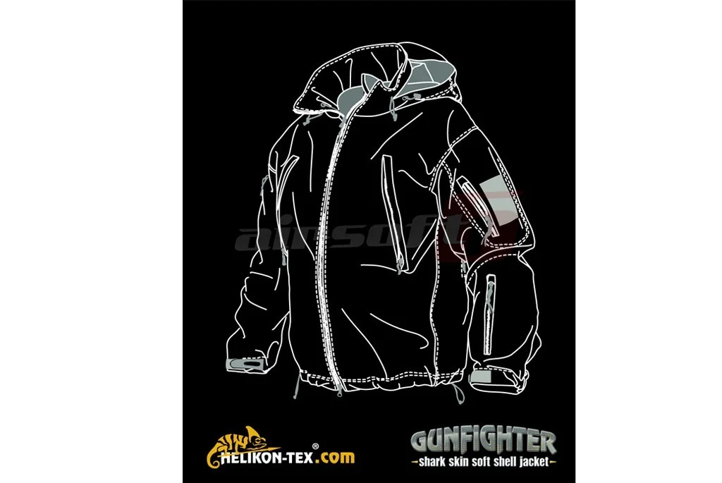 The Gunfighter jacket made by Helikon Tex has been designed to provide the user with a high level of protection and the necessary utility during action on the battlefield. The materials used offer good thermal comfort, protection against wind and moisture without restricting the necessary ventilation during exertion. 3 essential layers of materials are used; Shark Skin made entirely of polyester coated with a waterproof Dupont Teflon layer, a membrane from Helikon-Tex designed to prevent wind penetration, and inside there is a soft synthetic layer intended to create a warm air cushion, thus enhancing thermal comfort.