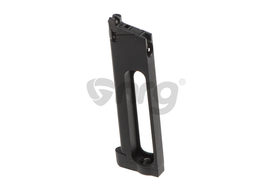 This magazine is manufactured by HFC. It has a capacity of 25 rounds and operates with Co2.