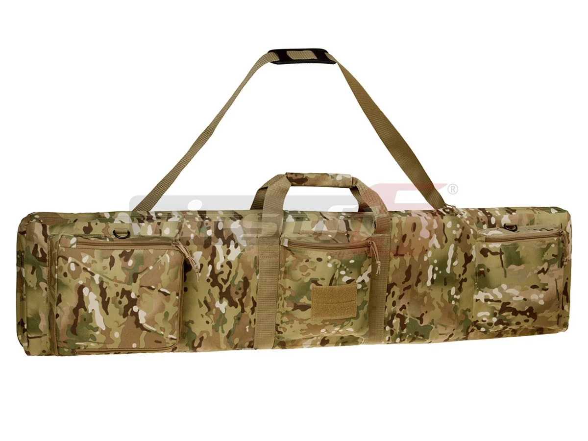 A bag designed for transporting airsoft replicas. The bag features a large compartment with a length of 130 cm and 3 additional smaller compartments on the outside. All compartments are equipped with double zipper closures. The bag is equipped with securing systems for the replicas in the main compartment.