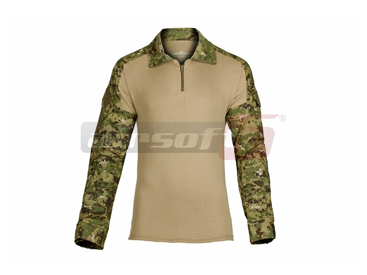 A combat shirt designed to be used in conjunction with tactical gear such as personal armor, tactical vests, and other equipment to enhance user comfort and performance.