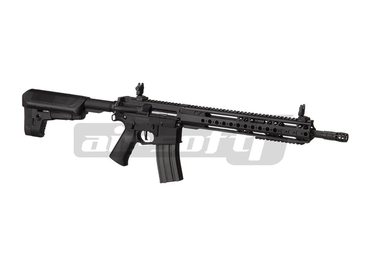 This model is called War Sport GPR-CC and is designed for both open field and close quarters combat. The total length of the replica with the stock extended is 935 mm, placing it in the medium to long category. It is made from aluminum alloys, significantly reducing weight and greatly improving maneuverability. The weight of the replica is 3Kg. Along the entire upper part of the replica, there is a standard rail where classic sights or an advanced sighting system can be mounted. The body of the replica represents the interesting part of this version due to modern elements designed to enhance both aesthetically and practically the pleasure of owning and using such a replica. Above the grip, there is an ambidextrous attachment system for the sling. The grip features a new design aimed at improving hold. The fire selector is also ambidextrous, and that’s about it for left-handed users. The mag catch is on the right side. The stock of the replica features a sleek, proprietary design that allows for the storage of a crane-type battery. The stock is adjustable with 6 positions.