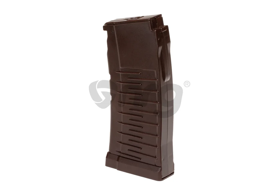LCT Hi Cap airsoft magazine designed for VSS Vintorez platforms. This airsoft magazine has a capacity of 250 6mm bbs. The spring inside the airsoft magazine is capable of feeding the vast majority of bbs without the need for winding. It is made of metal, with a plastic interior mechanism.