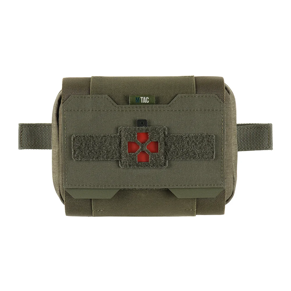 The M-TAC first aid kit will become essential in providing first aid. It consists of two parts: a bag with an internal organizer and a base that can be attached to equipment.
