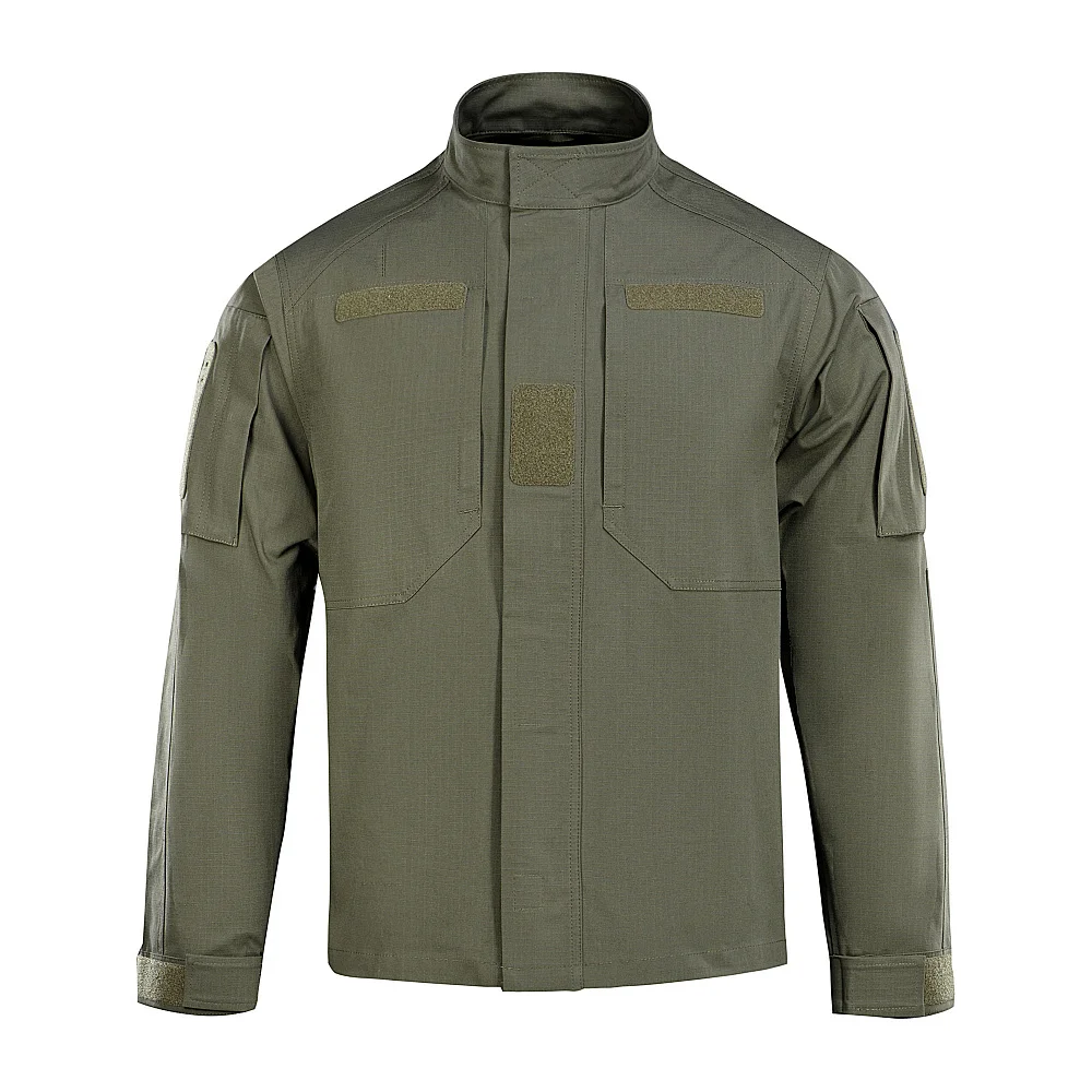 The M-Tac Patrol Flex jacket has a comfortable, slightly soft cut. The jacket features a high collar, Velcro zipper, as well as a detachable central closure in the form of a plastic "tractor" zipper that covers the Velcro strips. There are two hidden "Velcro" pockets on the chest with vertical entrances for easy access to contents, as well as horizontal Velcro panels for attaching patches. Embroidered eyelets for improved ventilation are located under the armpits. The sleeves have 1 patch pocket with a vertical zipper entrance and a Velcro panel, with service compartments for attaching handles or similar equipment. On the back, there is a reinforced yoke at the top of the back, with a Velcro panel for an IR marker under the collar, and expansion pleats along the armor contour that help maintain freedom of arm movement, even when a vest or gear is worn over the jacket. The sleeves are equipped with a Velcro patch pocket for installing soft protection. The cuffs are adjustable with Velcro flaps