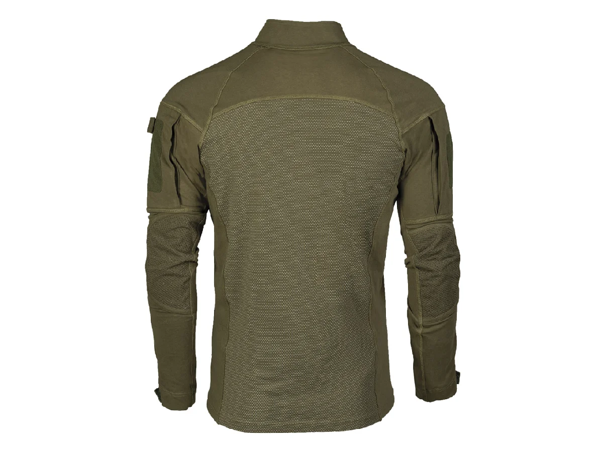 The Assault combat shirt from Mil-Tec is made of cotton and elastane (96% cotton, 4% elastane), making it breathable, slim fit, and extremely comfortable to wear. The sleeves feature a velcro adjustment system. The high-closing collar provides additional protection for the chin, while the rubber buttons on the elbows protect the material in this sensitive area from wear and tear. The upper arm pockets with zippers allow you to easily store small equipment. Additionally, they are equipped with Velcro for attaching patches. Two pen holders on the left forearm complete the Assault combat shirt.
