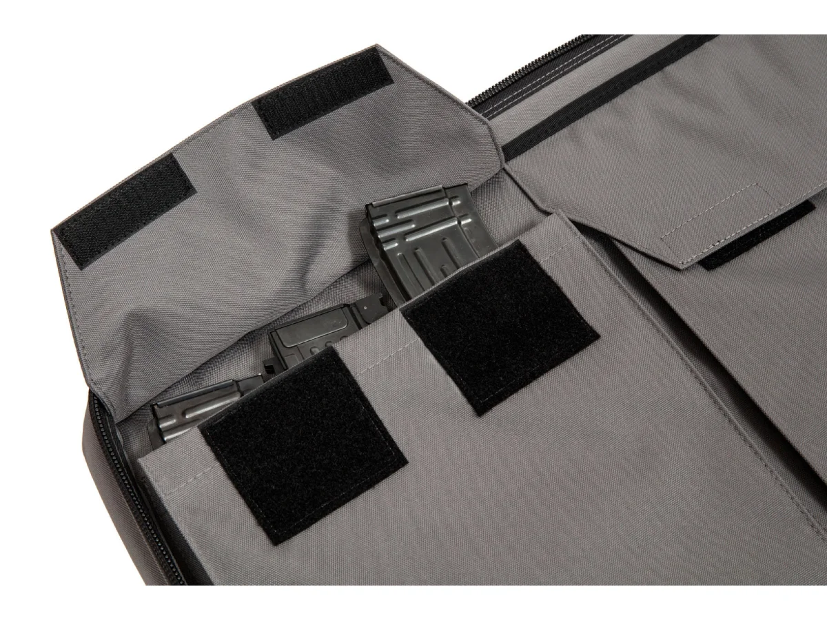 An efficient transport system for airsoft replicas and gear. The bag is well-compartmentalized and equipped with spacious pockets. The design allows for the safe transport of an airsoft replica as well as the gear intended for it.