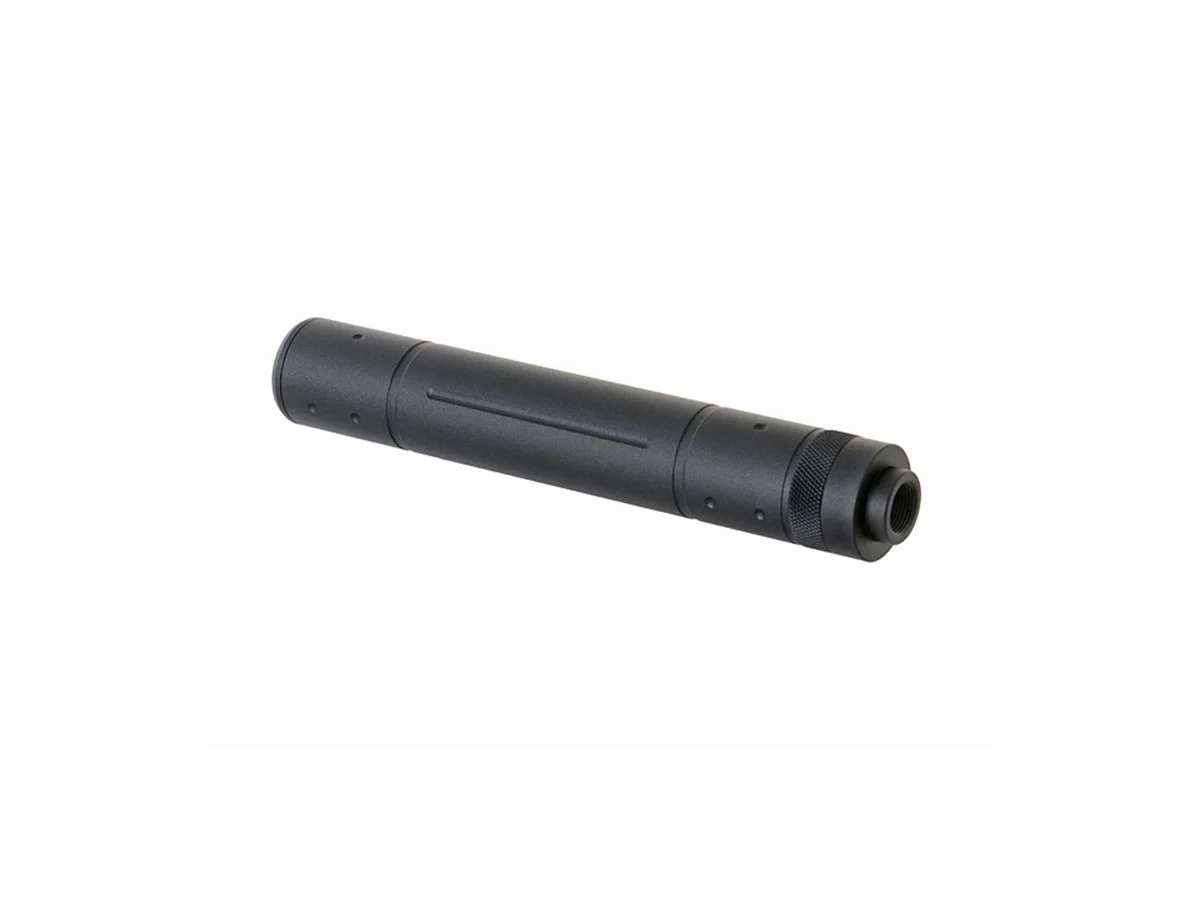 Suppressor manufactured by ACM from aluminum with a diameter of 30mm. Being made of aluminum, its weight is reduced, thus improving maneuverability. The suppressor effectively reduces some of the sound produced by the BB leaving the inner barrel of the replica. The suppressor is equipped with 14mm + and - threads on both ends, allowing for easy installation. The length is 195 mm.