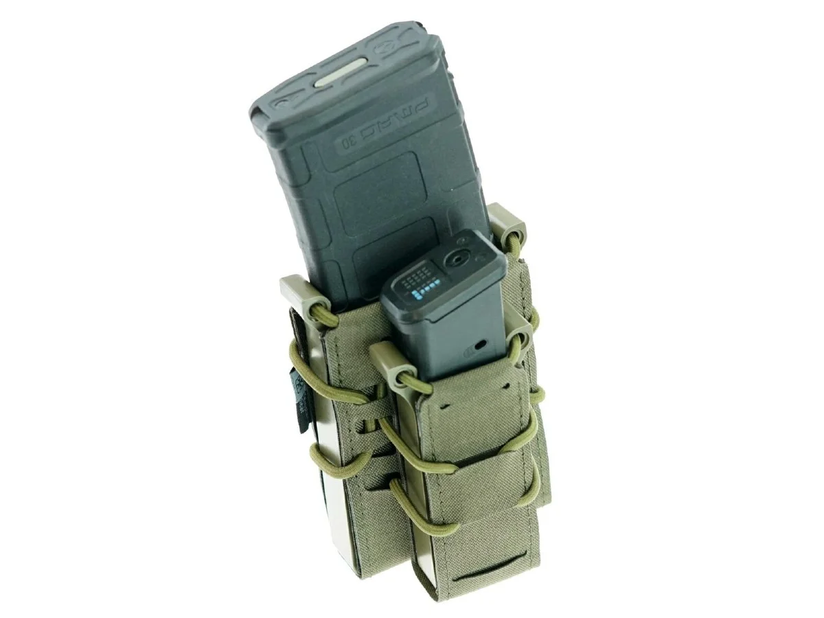This pocket made by Templar's Gear is specially designed to be attached to platforms with Molle attachment system. This attachment system is specially designed to securely connect the platform with accessories. It is made of durable nylon material, with reinforced stitching. The pocket can accommodate 1 M4/M16 magazine and 1 Pistol magazine. This utility pocket is ideal for accessorizing vests or belts in order to increase the amount of magazines that can be carried.
