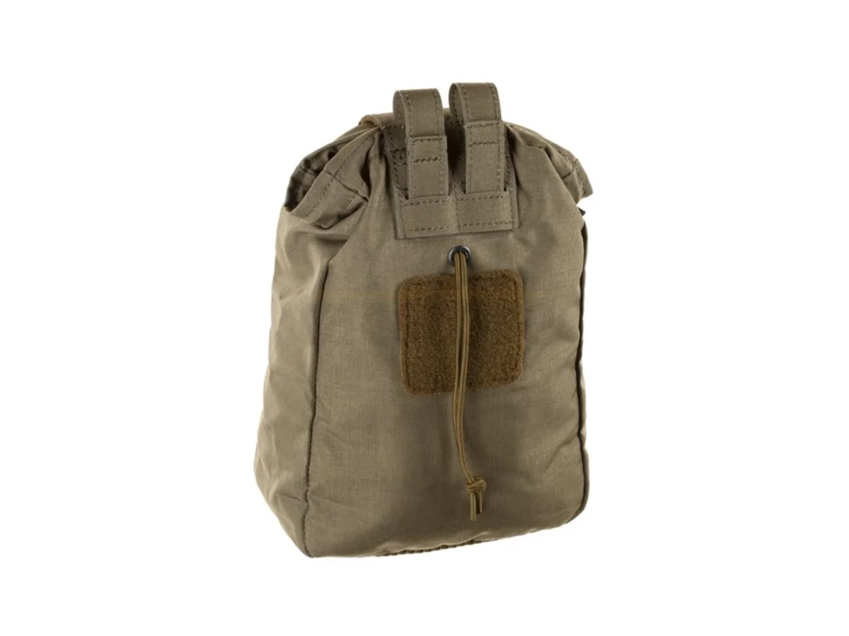 The design allows you to comfortably hold up to 4 AR/AK magazines. The pocket's collar features an elastic tail (the hole size is adjustable) and a metal stiffening element ensures shape when opened. The shape of the pocket allows you to roll or compress it completely into a small cube (secured by a velcro flap). The pocket is MOLLE compatible or can be attached using MALICE clips. The pocket is made from high-quality materials.